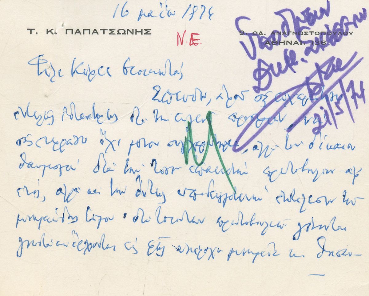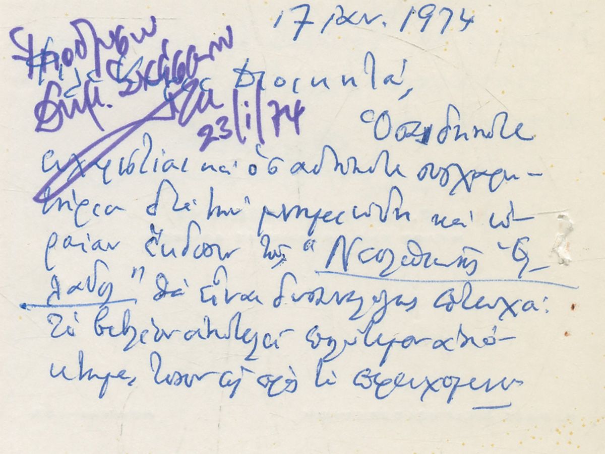 CARTES DE VISITE. Ιδιόχειρες ευχαριστήριες και συγχαρητήριες κάρτες Ελλήνων λογοτεχνών προς της Εθνική Τράπεζα της Ελλάδος για εκδόσεις βιβλίων της, 1970-1974. Λιλή Ιακωβίδη, Άγγελος Δόξας, Πάρις Τακόπουλος, Διαλεχτή Ζευγώλη-Γλέζου, Πέτρος Χάρης, Ε. Παπανούτσος, Νίκος Δήμου, Γάννης Παπαϊωάννου (μουσουργός), Εύα Βλάμη-Λεκατσά, Τ. Παπατσώνης, Ελένη Ουράνη. (15)